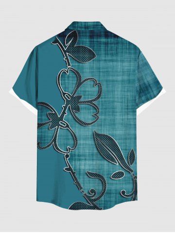 Plus Size 3D Textured Flower Leaf Print Hawaii Button Pocket Shirt For Men - Deep Green - 3xl