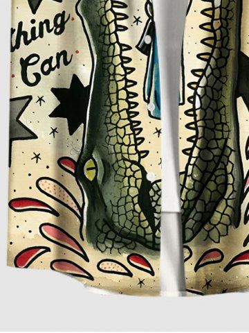 Plus Size Acrobatics Monkey Girl Crocodile Star Print Buttons Pocket Hawaii Shirt For Men - Beige - S