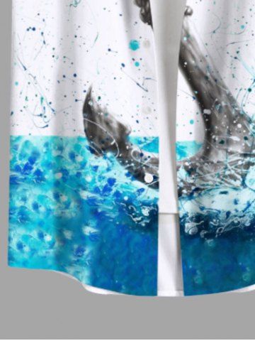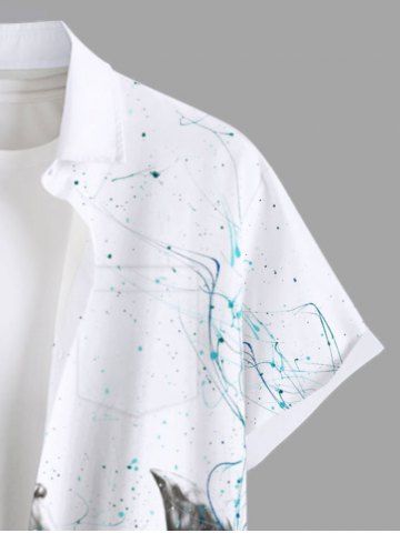Plus Size Anchor Sea Painting Splatter Print Hawaii Button Pocket Shirt For Men - White - 4xl