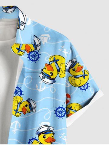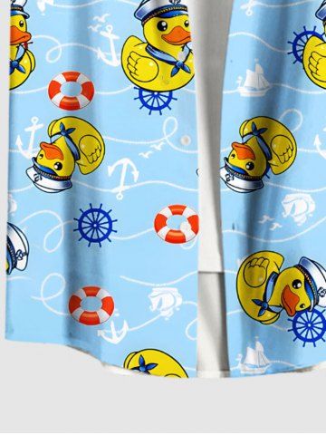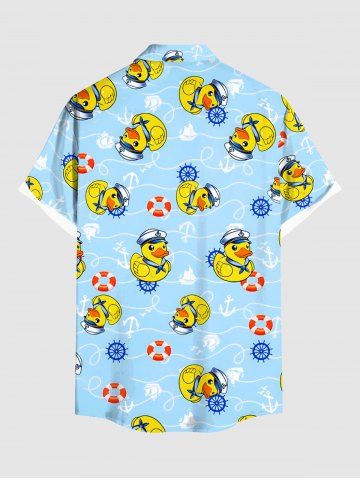 Plus Size Anchor Swimming Ring Cute Duck Print Hawaii Cruise Button Pocket Shirt For Men - Light Blue - 5xl