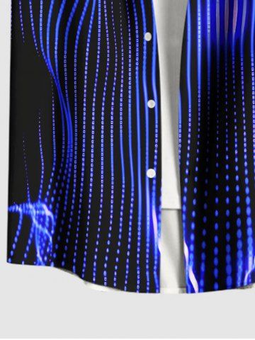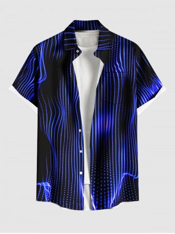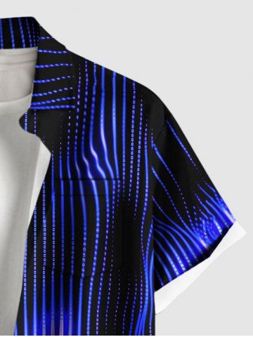 Plus Size Aurora Art Geometric Stripes Neon Print Buttons Pocket Shirt For Men - Deep Blue - 3xl