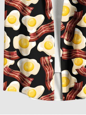 Plus Size Bacon Fried Egg Print Buttons Pocket Hawaii Shirt For Men - Black - M