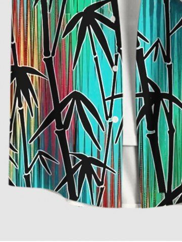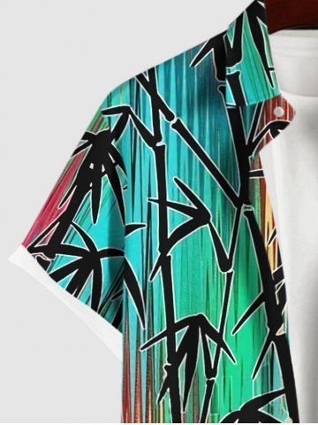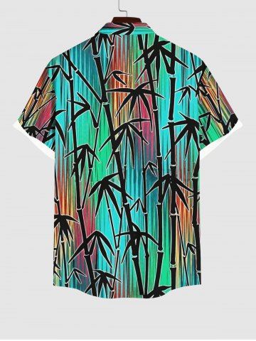 Plus Size Bamboo Colorful Striped Print Hawaii Buttons Pocket Shirt For Men - Green - 3xl