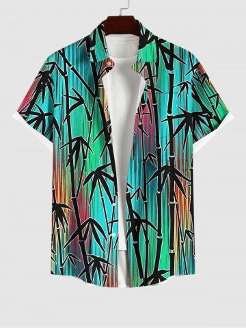 Plus Size Bamboo Colorful Striped Print Hawaii Buttons Pocket Shirt For Men - Green - 4xl