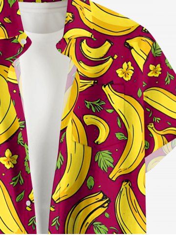 Plus Size Banana Flower Leaf Print Hawaii Button Pocket Shirt For Men - Red Wine - L