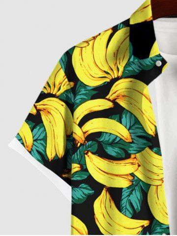 Plus Size Banana Leaf Print Buttons Pocket Hawaii Shirt For Men - Yellow - 3xl