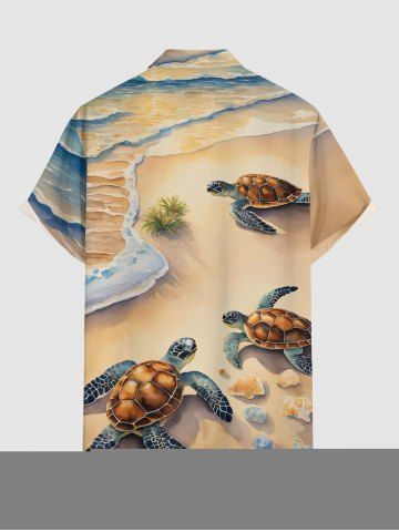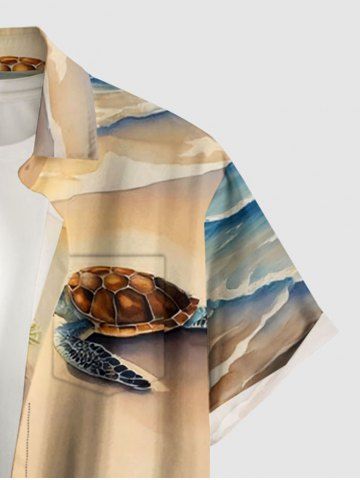 Plus Size Beach Sea Turtle Print Hawaii Sea Creatures Button Pocket Shirt For Men - Light Coffee - M