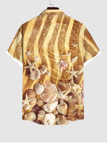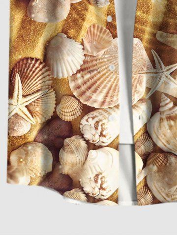 Short Sleeves Shirts > Hawaii Plus Size Beach Shell Starfish Conch Glitter 3D Print Buttons Pocket Shirt For Men