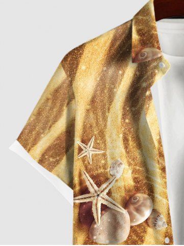 Hawaii Plus Size Beach Shell Starfish Conch Glitter 3D Print Buttons Pocket Shirt For Men - Coffee - 4xl