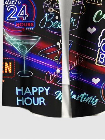 Plus Size Beer Juice Letters Neon Print Buttons Pocket Hawaii Shirt For Men - Black - M