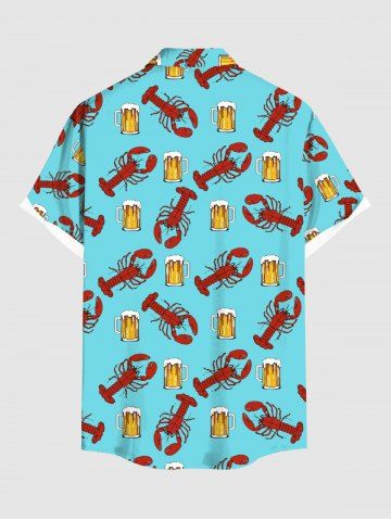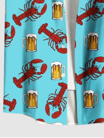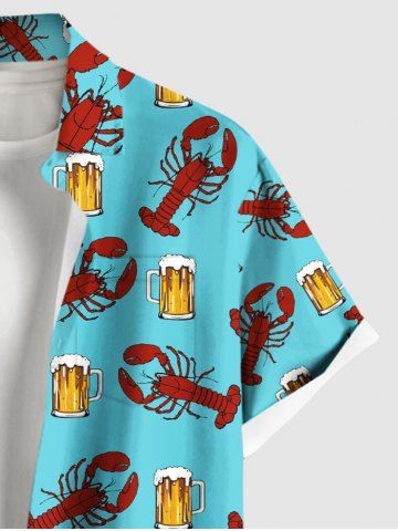 Short Sleeves Shirts > Plus Size Beer Lobster Print Buttons Pocket Hawaii Shirt For Men