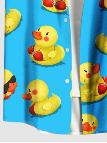 Plus Size Bikini Ducks Print Buttons Pocket Hawaii Shirt For Men - Sky Blue - Xl