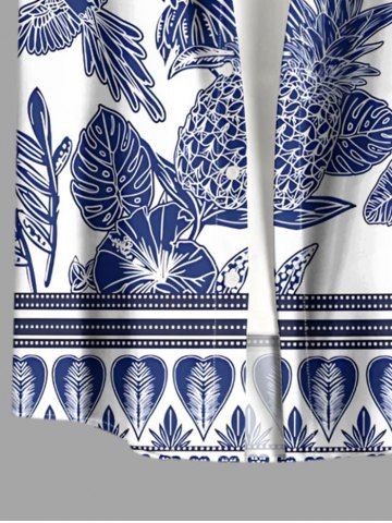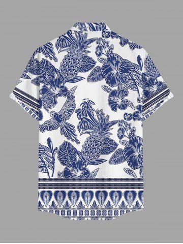 Plus Size Blue And White Porcelain Pineapple Hibiscus Flower Leaf Print Buttons Pocket Hawaii Shirt For Men - Blue - 5xl