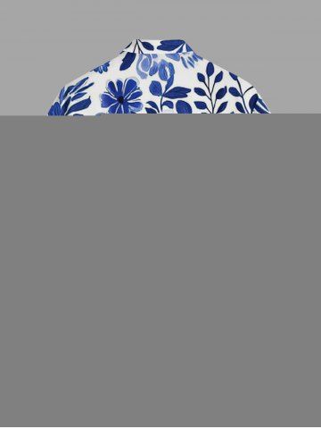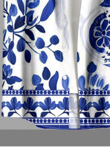 Plus Size Blue And White Porcelain Vase Flowers Leaf Print Buttons Pocket Hawaii Shirt For Men - Blue - M