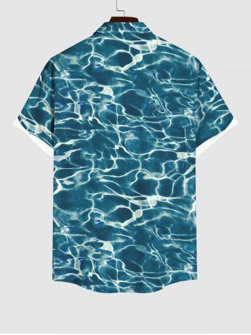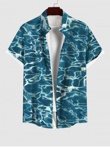 Short Sleeves Shirts > Plus Size Blue Aqua Sea Water Surface Floral Print Buttons Pocket Summer Hawaii Shirt For Men