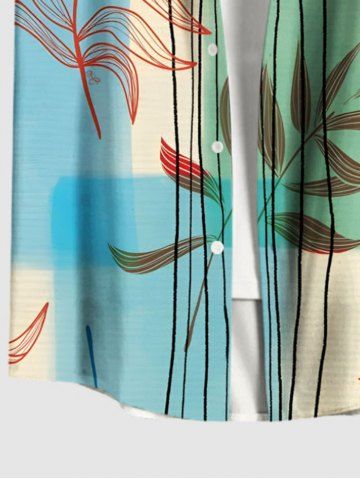 Plus Size Branch Leaves Colorblock Line Print Hawaii Button Pocket Shirt For Men - Multi-a - Xl