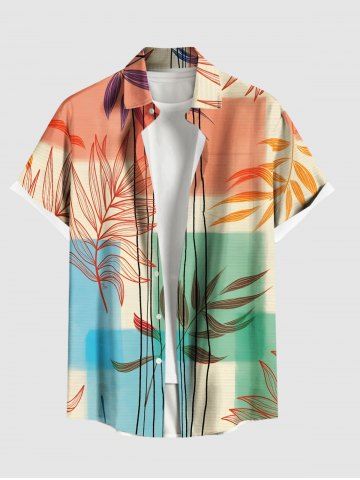 Short Sleeves Shirts > Plus Size Branch Leaves Colorblock Line Print Hawaii Button Pocket Shirt For Men