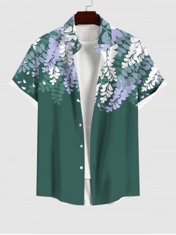 Plus Size Branch Leaves Print Hawaii Ombre Button Pocket Shirt For Men - Green - Xl