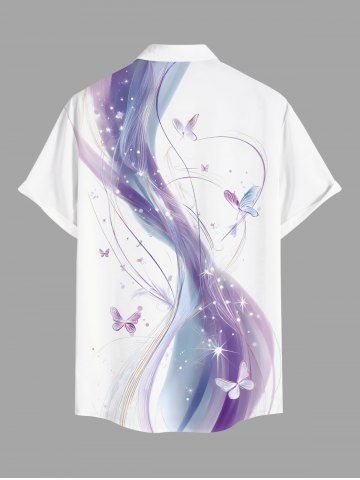 Plus Size Butterfly Curve Colorblock Glitter 3D Print Buttons Pocket Hawaii Shirt For Men - White - S