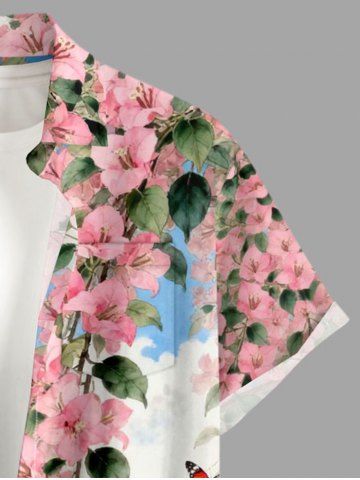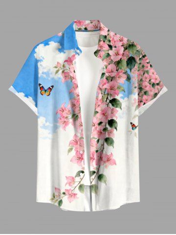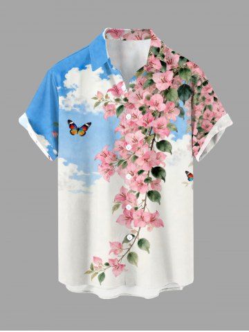 Plus Size Butterfly Flowers Leaf Cloud Print Buttons Pocket Hawaii Shirt For Men - Sky Blue - Xl
