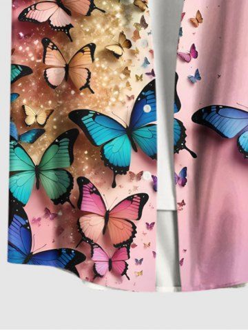 Plus Size Butterfly Ombre Print Buttons Pocket Hawaii Shirt For Men - Light Pink - S