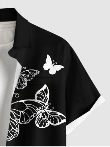 Plus Size Butterfly Print Buttons Pocket Hawaii Shirt For Men - Black - S