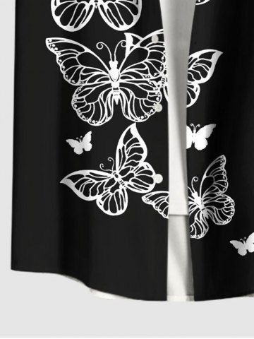 Plus Size Butterfly Print Buttons Pocket Hawaii Shirt For Men - Black - 6xl