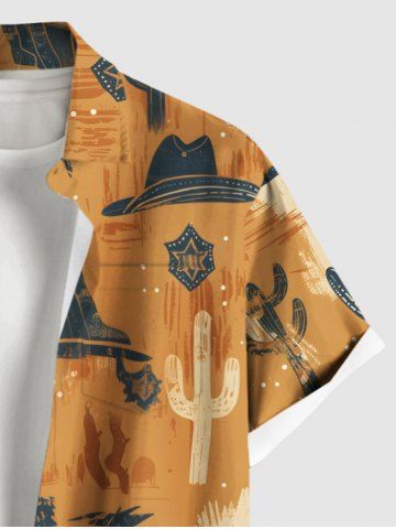 Short Sleeves Shirts > Plus Size Cactus Plant Hat Floral Desert Print Hawaii Button Pocket Shirt For Men