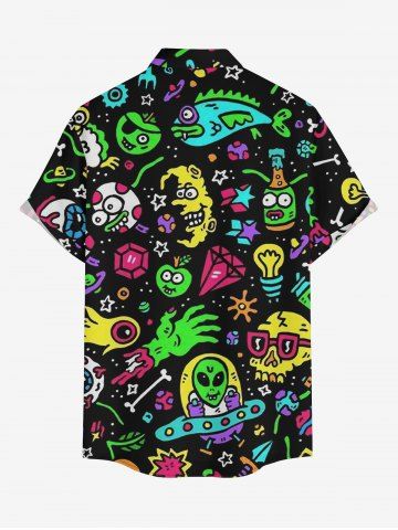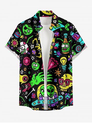 Plus Size Cartoon Graphic Print Hawaii Button Pocket Shirt For Men - Black - S