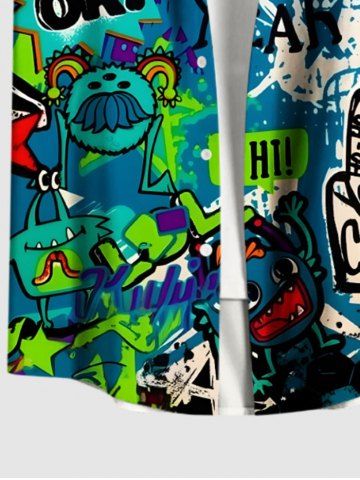 Short Sleeves Shirts > Plus Size Cartoon Monster Tape Star Letters Graffiti Print Hawaii Button Pocket Shirt For Men