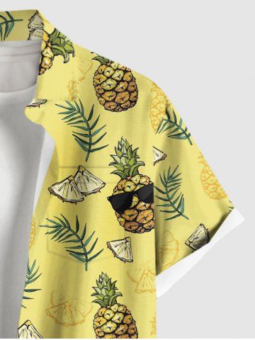 Plus Size Cartoon Pineapple Tropical Leaves Print Hawaii Button Pocket Shirt For Men - Yellow - 6xl