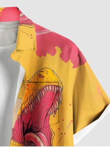 Plus Size Cat Dinosaur Cloud Colorblock Print Buttons Pocket Hawaii Shirt For Men - Yellow - 5xl