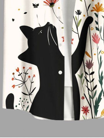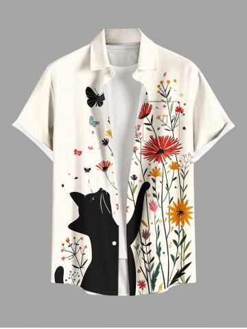 Short Sleeves Shirts > Plus Size Cat Flowers Butterfly Print Buttons Pocket Hawaii Shirt For Men