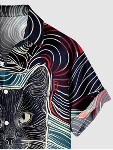 Short Sleeves Shirts > Plus Size Cat Line Fluid Print Button Pocket Shirt For Men