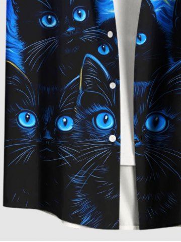 Plus Size Cat Sea Waves Painting Galaxy Print Hawaii Button Pocket Shirt For Men - Sky Blue - M