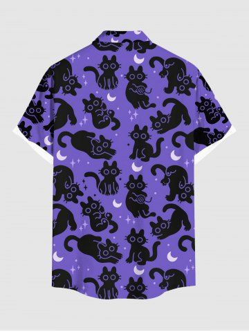 Plus Size Cats Star Moon Print Buttons Pocket Shirt For Men - Purple - 5xl