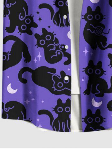 Plus Size Cats Star Moon Print Buttons Pocket Shirt For Men - Purple - 6xl