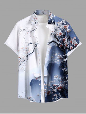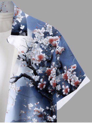 Plus Size Chinese Style Mountain Plum Bossom Flowers Print Buttons Pocket Hawaii Shirt For Men - Deep Blue - M