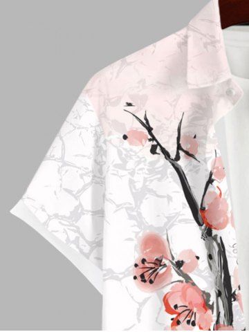 Short Sleeves Shirts > Plus Size Chinese Style Peach Blossom Branched Ombre Colorblock Print Buttons Pocket Shirt For Men