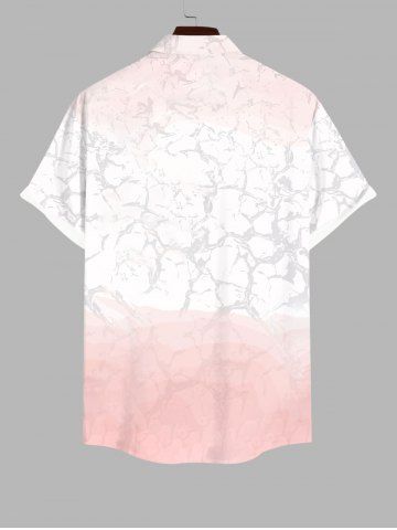 Plus Size Chinese Style Peach Blossom Branched Ombre Colorblock Print Buttons Pocket Shirt For Men - Light Pink - 4xl