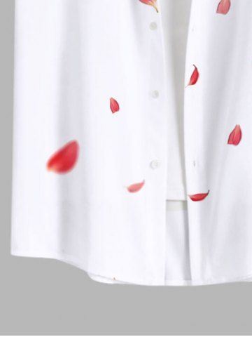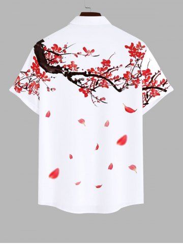 Plus Size Chinese Style Plum Bossom Petal Brach Print Buttons Pocket Shirt For Men - White - 4xl