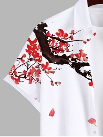 Short Sleeves Shirts > Plus Size Chinese Style Plum Bossom Petal Brach Print Buttons Pocket Shirt For Men