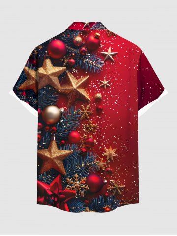 Plus Size Christmas Ball Star Snowflake Print Buttons Pocket Shirt For Men - Red - 6xl