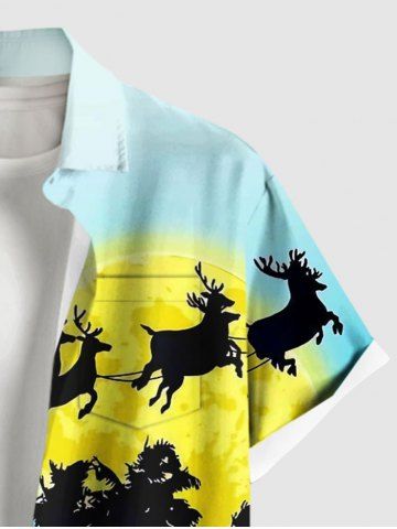 Short Sleeves Shirts > Plus Size Christmas Elk Santa Claus Coconut Tree Moon Sea Print Hawaii Button Pocket Shirt For Men