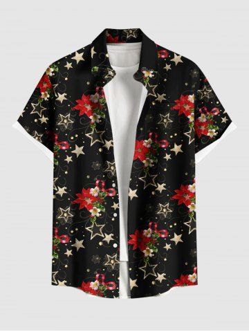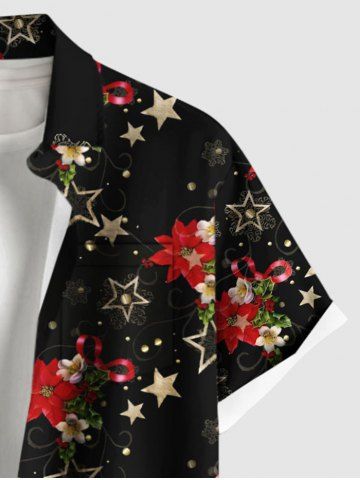 Plus Size Christmas Flowers Star Snowflake Print Buttons Pocket Shirt For Men - Black - M