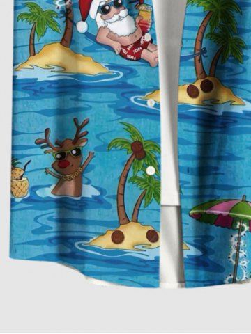 Plus Size Christmas Hat Elk Santa Claus Coconut Tree Seascape Print Hawaii Button Pocket Shirt For Men - Sky Blue - 5xl