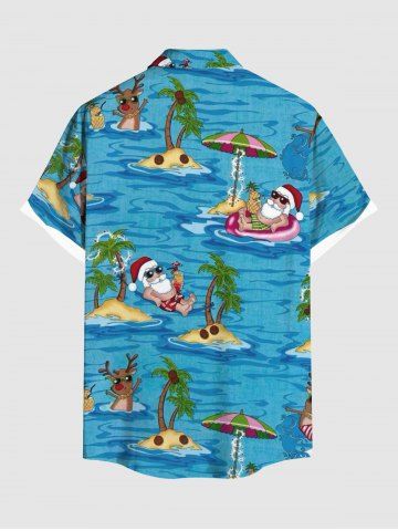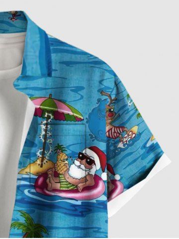 Plus Size Christmas Hat Elk Santa Claus Coconut Tree Seascape Print Hawaii Button Pocket Shirt For Men - Sky Blue - 6xl