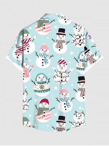 Plus Size Christmas Light Snowflake Snowman Star Print Buttons Pocket Shirt For Men - Powder Blue - 2xl