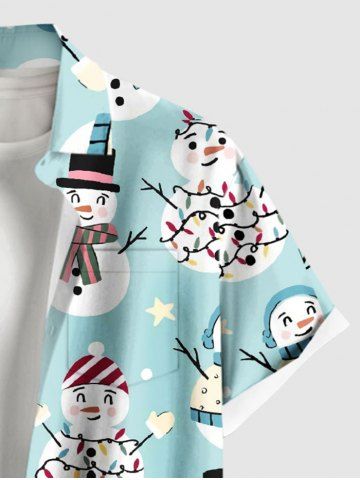 Plus Size Christmas Light Snowflake Snowman Star Print Buttons Pocket Shirt For Men - Powder Blue - 5xl