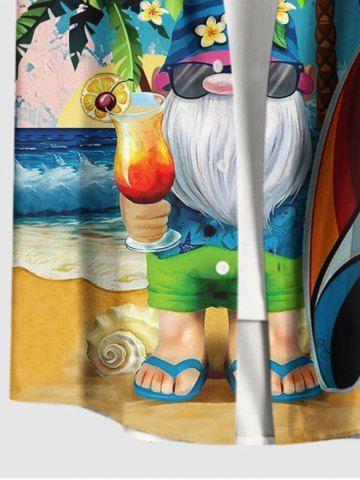 Plus Size Christmas Santa Claus Coconut Tree Beach Print Hawaii Button Pocket Shirt For Men - Dark Turquoise - 3xl